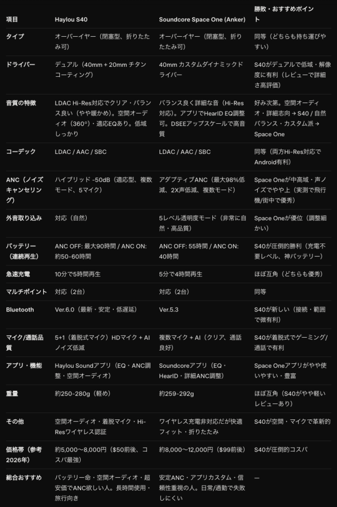 Grok様に同価格帯のみんなに大人気AnkerのSoundcore Space Oneと比較してもらいます。